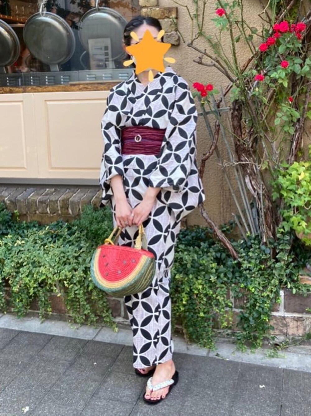 七宝柄が好きです 安いくしゃくしゃ兵児帯だけど渋色で大人見えすると思います スイカパフェを食べに行きました