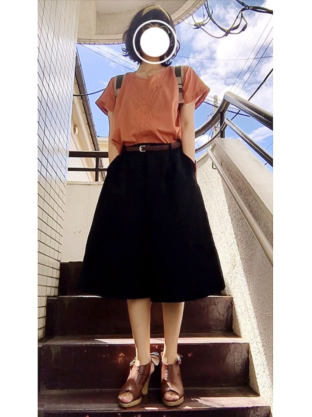 かののシャツ/ブラウス「Vネック刺繍半袖ブラウス」を使ったコーディネート