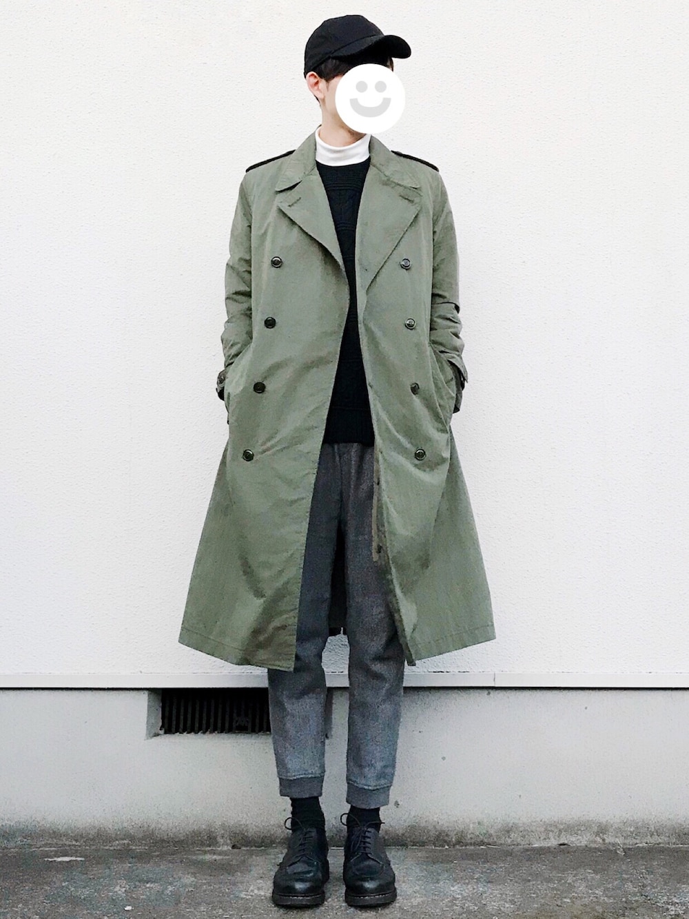 やっぱりモノトーンとカーキは落ち着きます。 コート L ニット L Tシャツ L パンツ M シューズ 7h 📷instagram → kitsune_w