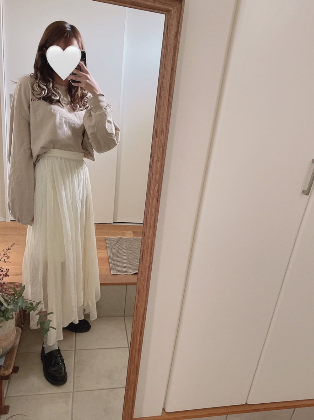 久しぶりの投稿です!! 今日はチコのワントーンコーデです🐏🤍 スカートがシースルーになってて可愛いです➰