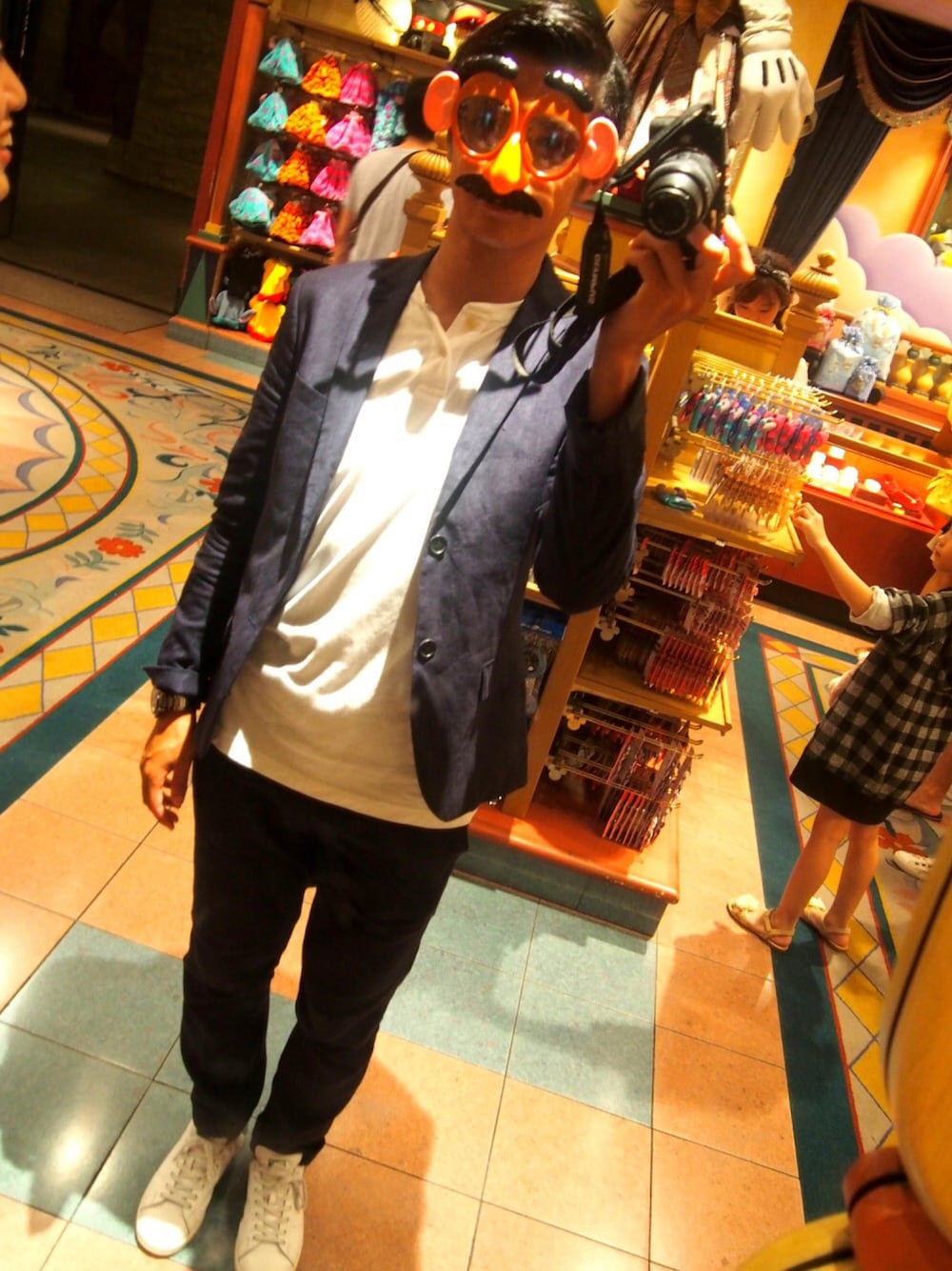 誕生日のお祝いでディズニーシーへ。 お祝いということでセットアップできっちりとしました。中はTシャツと足元はスニーカーで少しラフ感を出しました! ちなみに、このTシャツは自分でマークなどを決めて作りました!