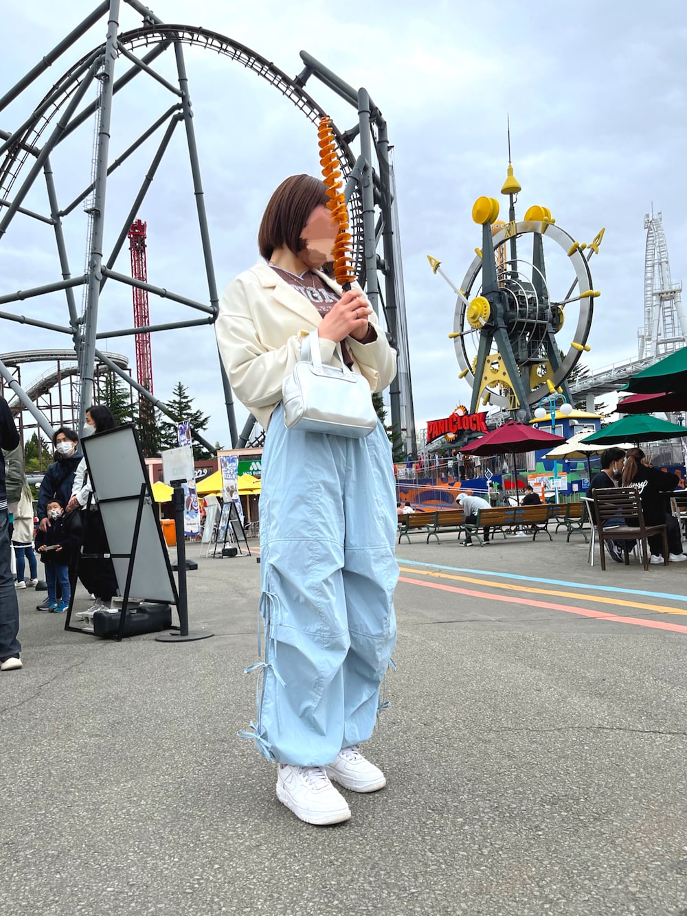 富士急コーデ🎢 春っぽいカーゴパンツかわいい🩵