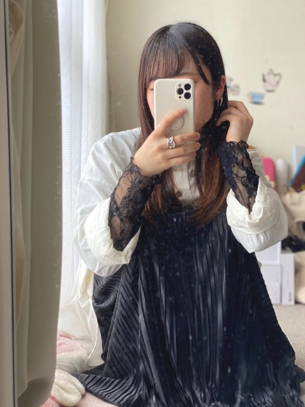 昨日あげたコーディネートでも使われていたこのしまむらで購入したシャツは、見つけて一瞬でカゴに納めました笑 素材もデザインもシンプルで着回しがしやすいです!今回は中にレーストップスを仕込んで着ました👏🏻