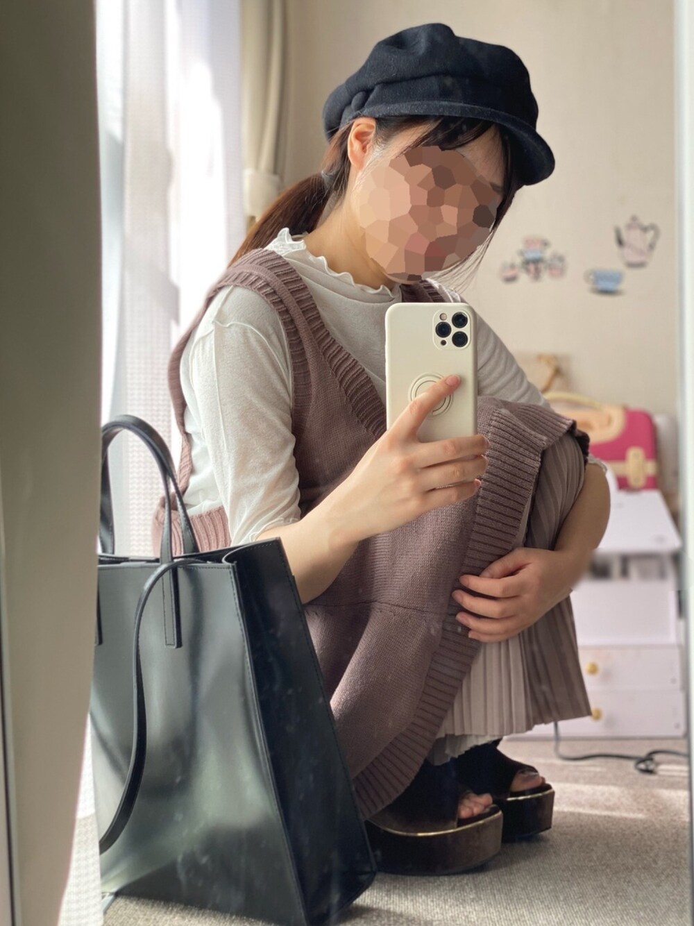 プリーツのパンツはスタイルがよく見えるので低身長にとっても嬉しいです🐰 ベロア素材のミュールはブラウンにゴールドのワンポイントが可愛いです!