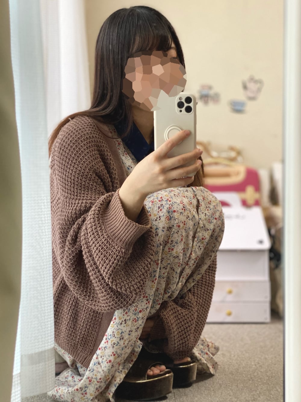 下北沢の古着屋さんで購入した花柄のワンピースにカーディガンを合わせました!