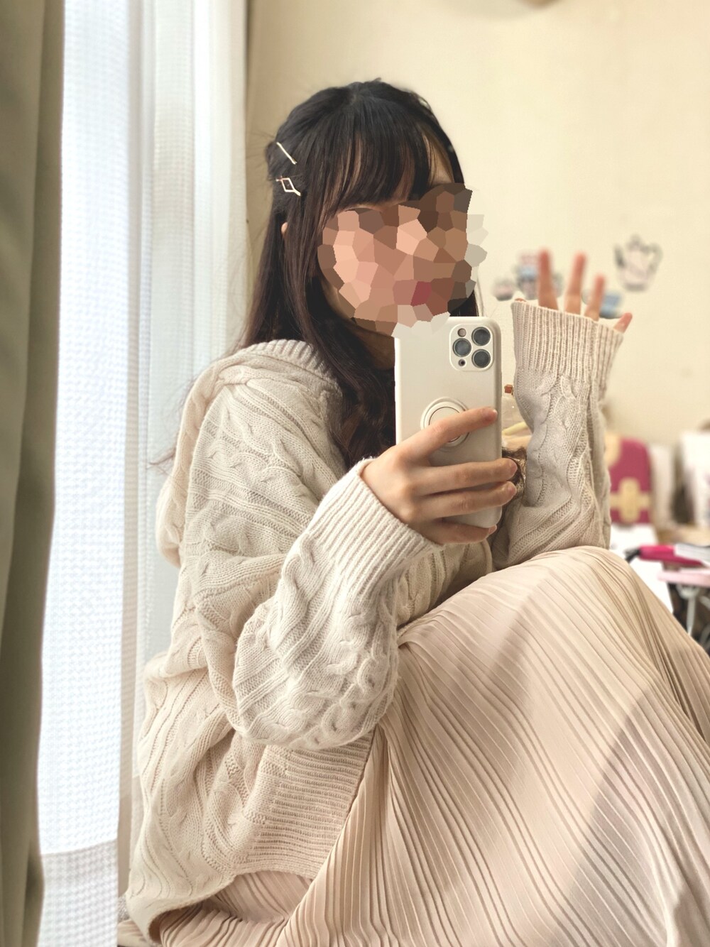フードニットとプリーツスカートの合わせでシルエットが可愛くなります🧸 ヘアはお団子ハーフアップです︎︎︎︎☺︎♡