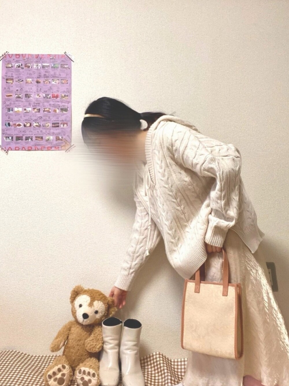 ご覧頂きありがとうございます⚬◦🦙 フード付きのカジュアルなニットにキレイめなロングスカートを合わせたコーディネートです🧸♥️ スカートは一度折りして着ています!