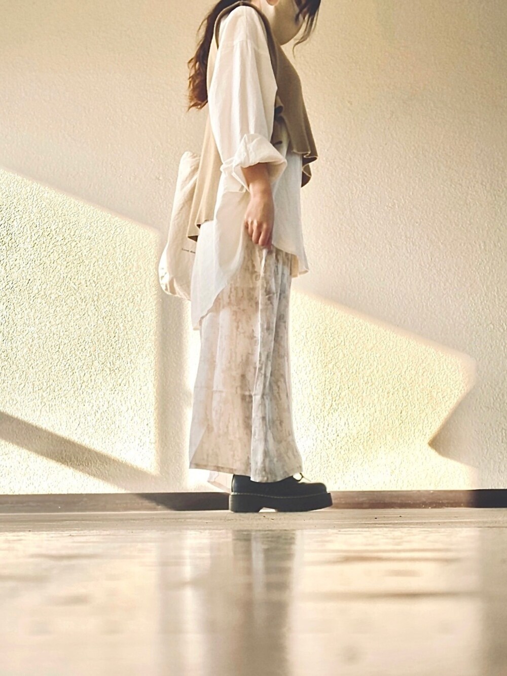 ゆかのベスト「【WEB限定】◆重ね着スタイルに◆サイドリボンレイヤードニットベスト」を使ったコーディネート