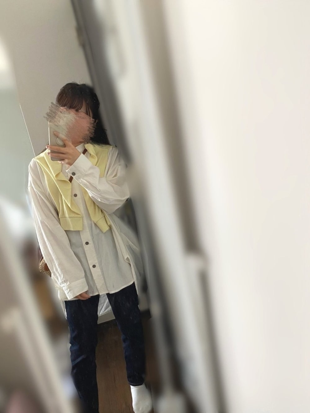 ご覧いただきありがとうございます︎︎☺︎ シンプルなコーディネートに差し色で黄色のカーディガンを掛けてみました🕊🌼