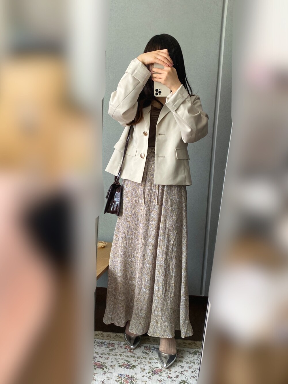 ご覧いただきありがとうございます!🌸 RETRO GIRLのジャケットとMAJESTIC LEGONの花柄スカートの相性が素敵すぎです🐰🪄 シルバーのパンプスを合わせて大人っぽい雰囲気にしました︎︎☺︎
