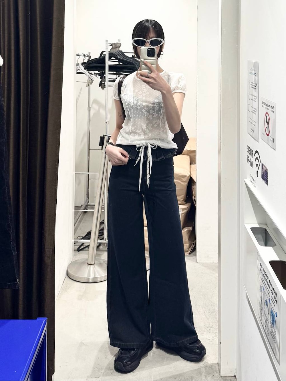 kitunesandayo(ALAND TOKYO)のデニムパンツ「3.3 Field Trip/デニムフリルパンツ」を使ったコーディネート