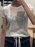 ⭐各アイテムのおすすめポイント  ̄ ̄ ̄ ̄ ̄ ̄ ̄ ̄ ̄ ̄ ̄ ̄ ̄ ̄ ̄ ̄ ̄ 【トップス】 トレンドの星柄がとっても可愛いシアートップス! 若干パフスリーブになってるのも腕が細見えして可愛いです(^^) 【ボトムス】 かなりハイウェストで脚長効果抜群! ウエストのフリルと、2本の紐がアクセントになって可愛いデザインです!