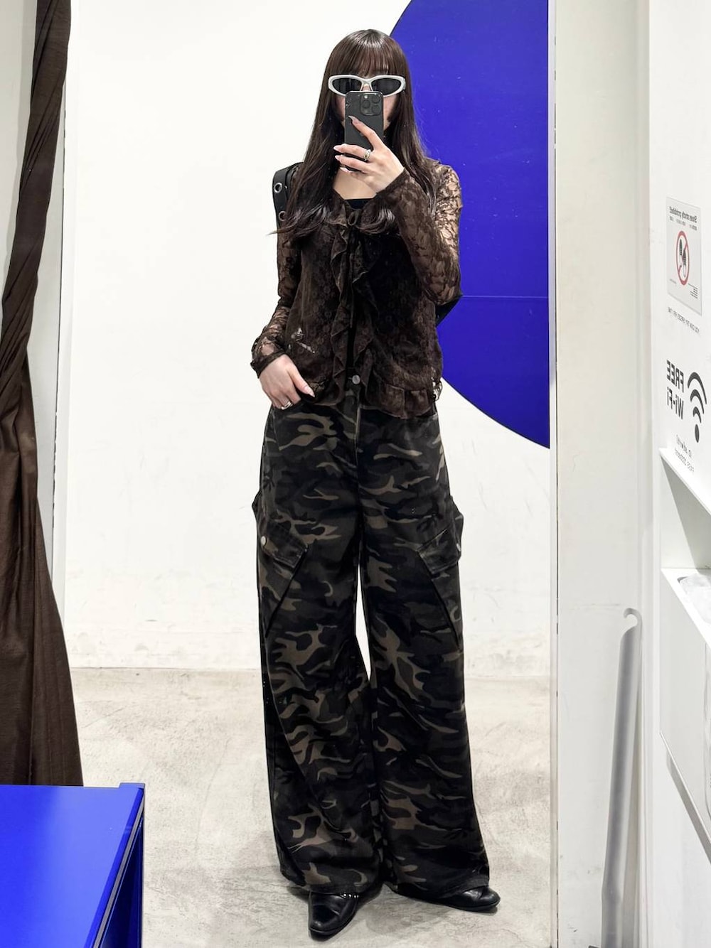 ⭐各アイテムのおすすめポイント  ̄ ̄ ̄ ̄ ̄ ̄ ̄ ̄ ̄ ̄ ̄ ̄ ̄ ̄ ̄ ̄ ̄ 【トップス】 透け感のあるレース生地がこれからの季節にぴったり⭐︎ 【ボトムス】 カモ柄のインパクトあるカーゴパンツ^_^