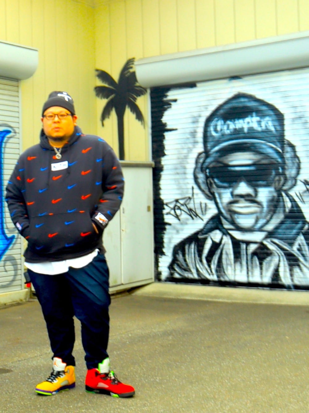 いつも行ってるCriminalさんに春物を買いに行ってきました!せっかくなのでお店のガレージに描かれてるグラフィティの横で撮影させて頂きました✧*。٩(ˊᗜˋ*)و✧*