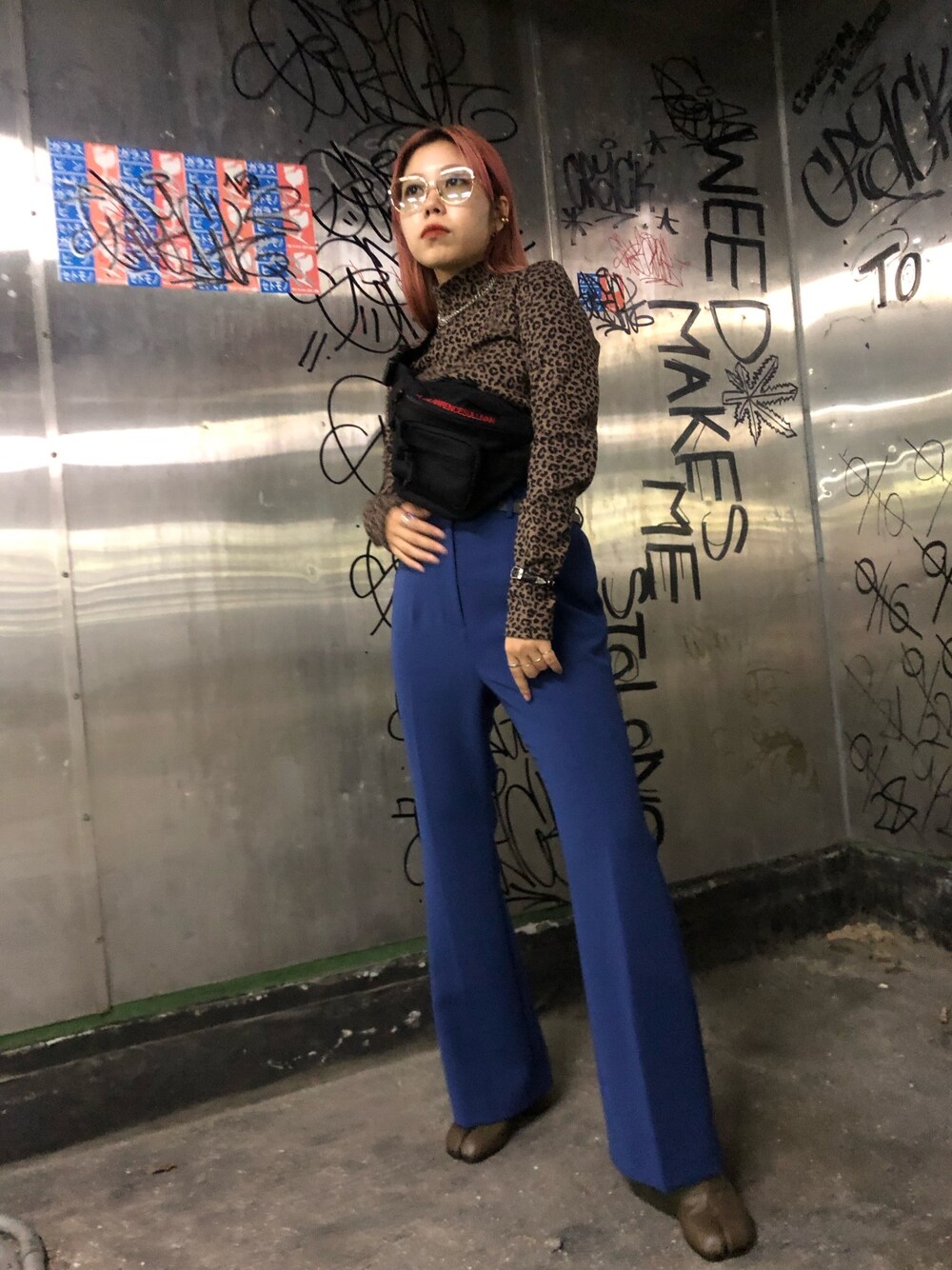 秋になるとアニマル柄着たくなります、、 特にレオパード、、、好きです、、😌😌 mame kurogouchiのフレアパンツは ブルーの発色とシルエットがとても綺麗で ブーツとの相性抜群です! ハイウエストになってるのでスタイルアップの効果も◎ instagram @midwest_ngl @kiyo__92