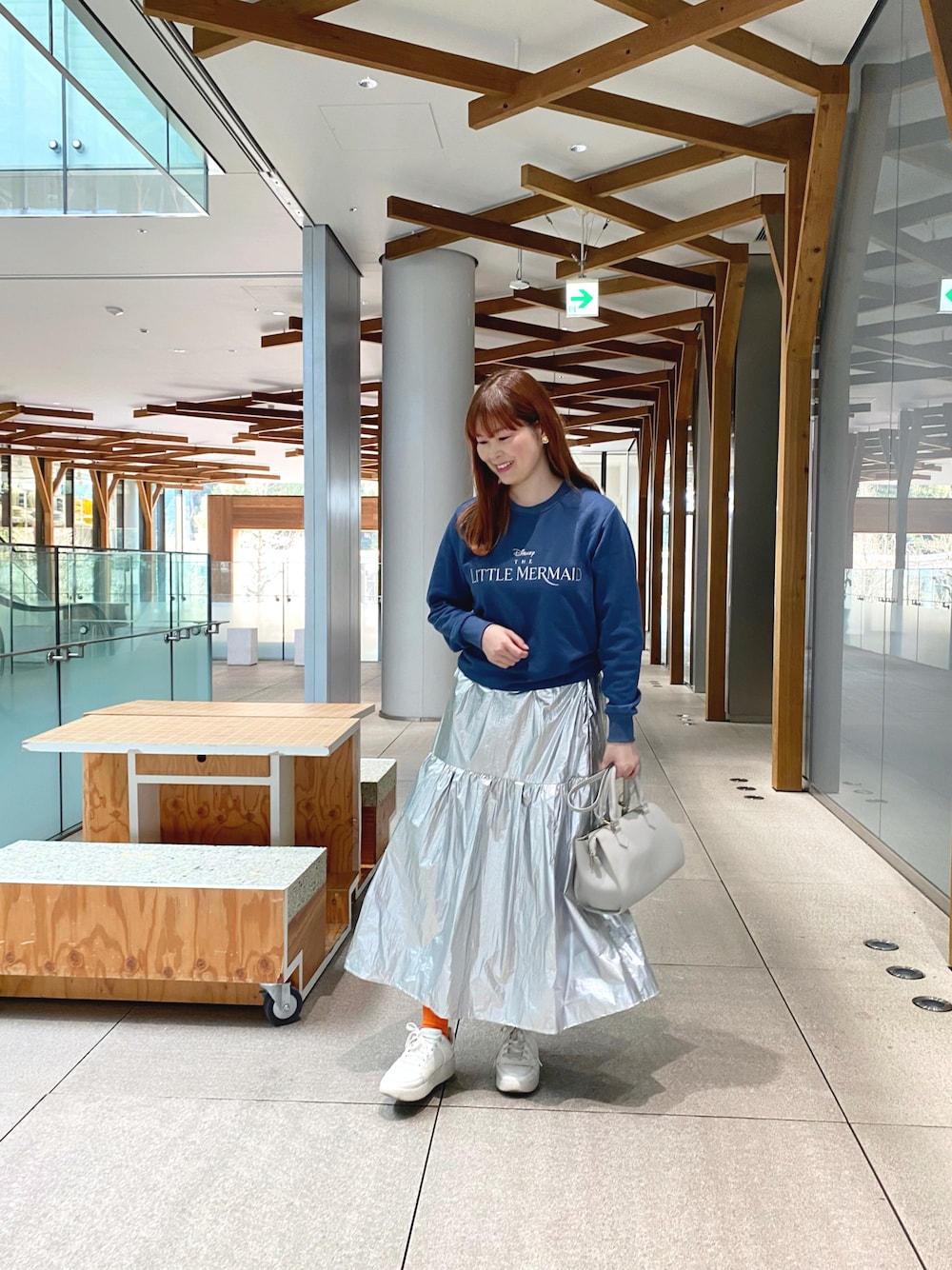 本日のきよこーでぃねーと🎀 代々木体育館のライブに行ってきました🛼🎤 テーマは「原宿カジュアルコーデ」 最高気温20度の予報だったのでスウェットを着てキルティングジャケットを羽織りました🤍 ロゴスウェット×シルバースカートが合います👍🏻 ライブでよく見えるように厚底スニーカーにしました😊 オレンジのソックスを差し色に🍊 【make】 雑誌の付録だったピンクのアイシャドウをおでかけの時だけ使ってて愛用しています🫶🏻 奥二重なので目頭にシェーディングをちょんちょん付けするとホリ深く見えるポイントです! to/oneのアイブロウが明るく染めた髪色に合ってて良い🙆🏻♀️ いつもいいね!ありがとうございます!