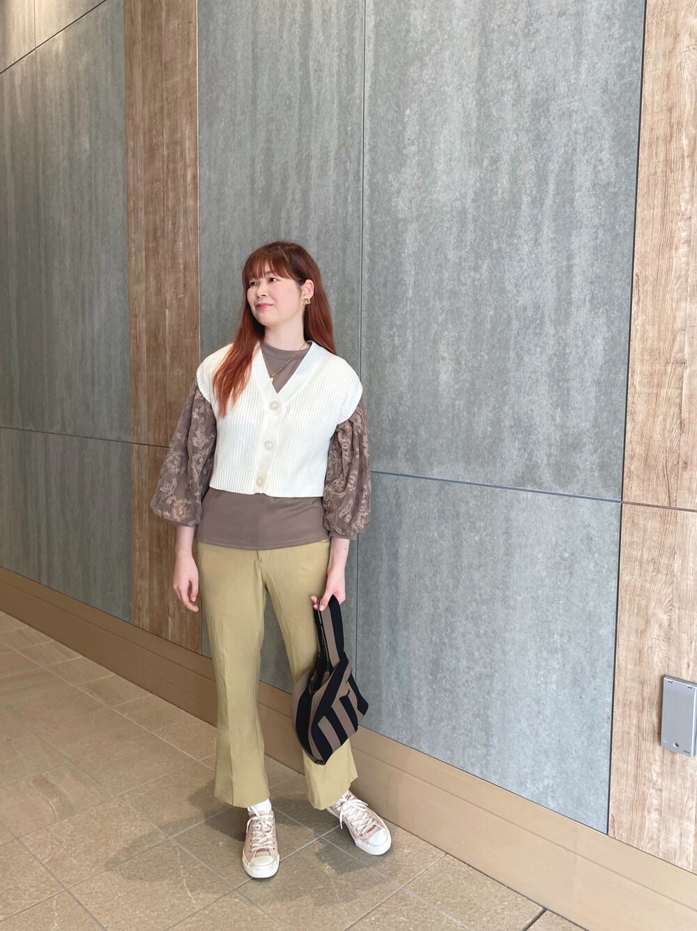 やっと長袖を着れる季節に!🍁 ブラウンのブラウスにニットベストを合わせて秋コーデに🍇 全体的にくすみカラーでまとめました!