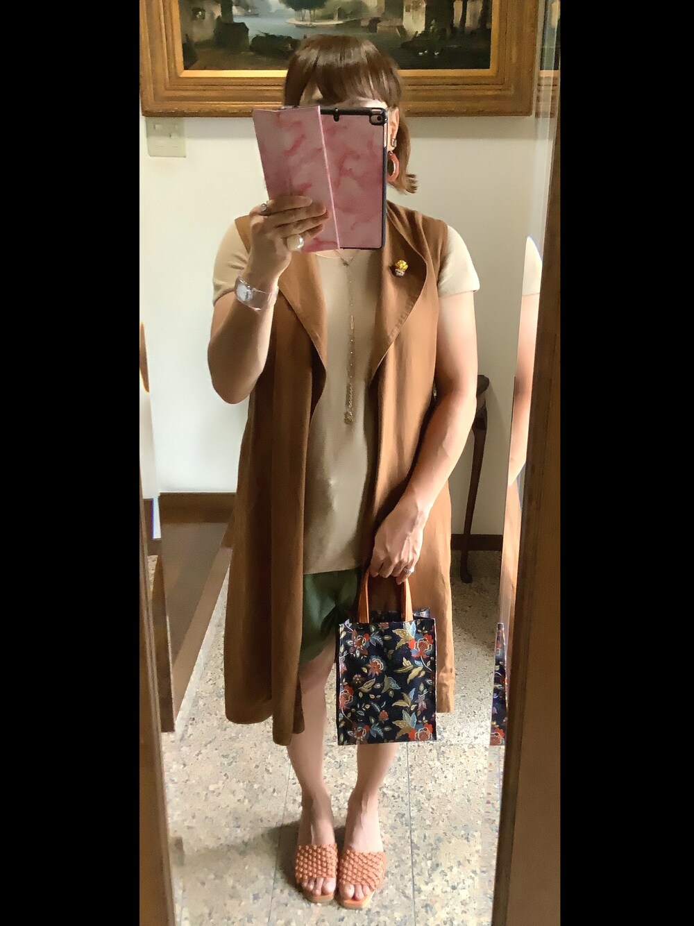 見て頂きありがとうございます。 ♡ 大好きなジレスタイル。 ♡ バック、明るい感じで合わせて ♡ ワンポイントでポテトもついてます🍟
