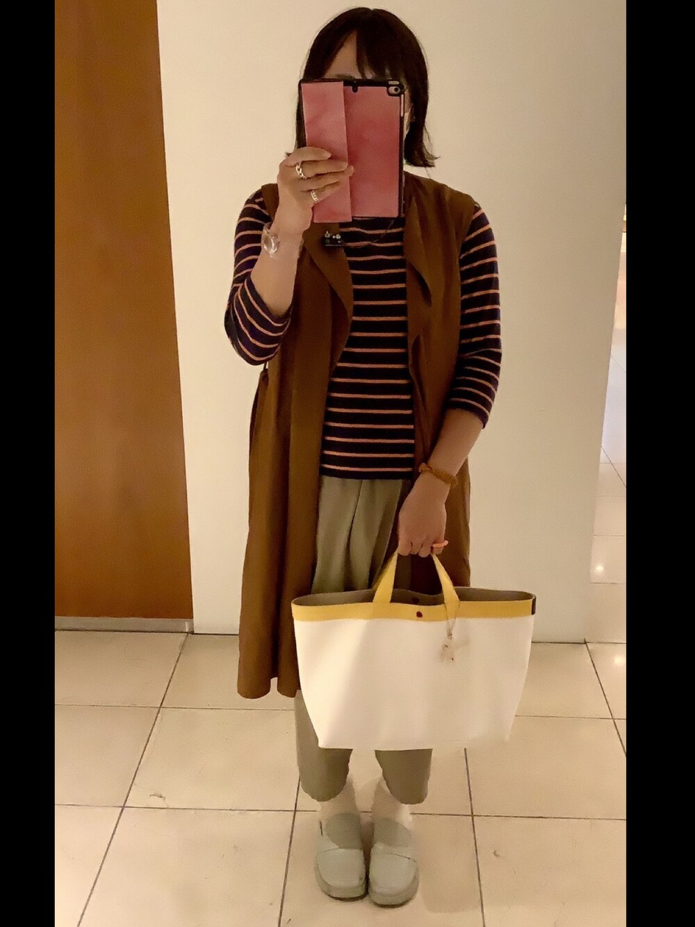 いいね、コメントありがとうございます💕 ♡ カジュアルジレスタイル。 ♡ パンツは形がかわいいワイドパンツ。 ♡ バックは爽やかな感じに🛍