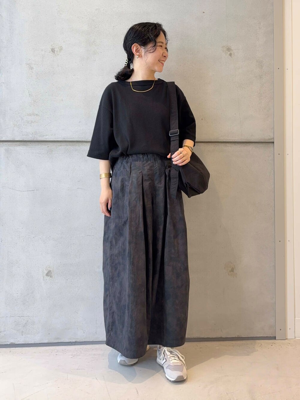 ・身長 152㎝ ・ウエスト 62〜64㎝ ・年齢 35歳 ▶︎FORK&SPOON ミニワッフル5分袖Tシャツ 綿×ポリエステル素材で の柔らかく肌馴染みの良い着心地です◎ (洗濯機洗いOK🧺) 私の体型で袖は肘がしっかり隠れ 着丈はヒップが7割程隠れるくらいです🐒💭 夏〜秋にかけてのトップスとして着回ししやすいです✨ ボトムスINスタイルとOUTスタイルで 画像を載せていますのでご覧ください☺️ ▶︎EKAL ナイロンタッサーワイドパンツ ナイロン100%のシャカっと感がある しっかりめのナイロン素材です! (洗濯機洗いOK🧺) 私の身長でくるぶし丈のワイドパンツ♢♦︎ シルエットはスカートのようですが、 パンツなのでアクティブな日でも 安心して履けます🏕️