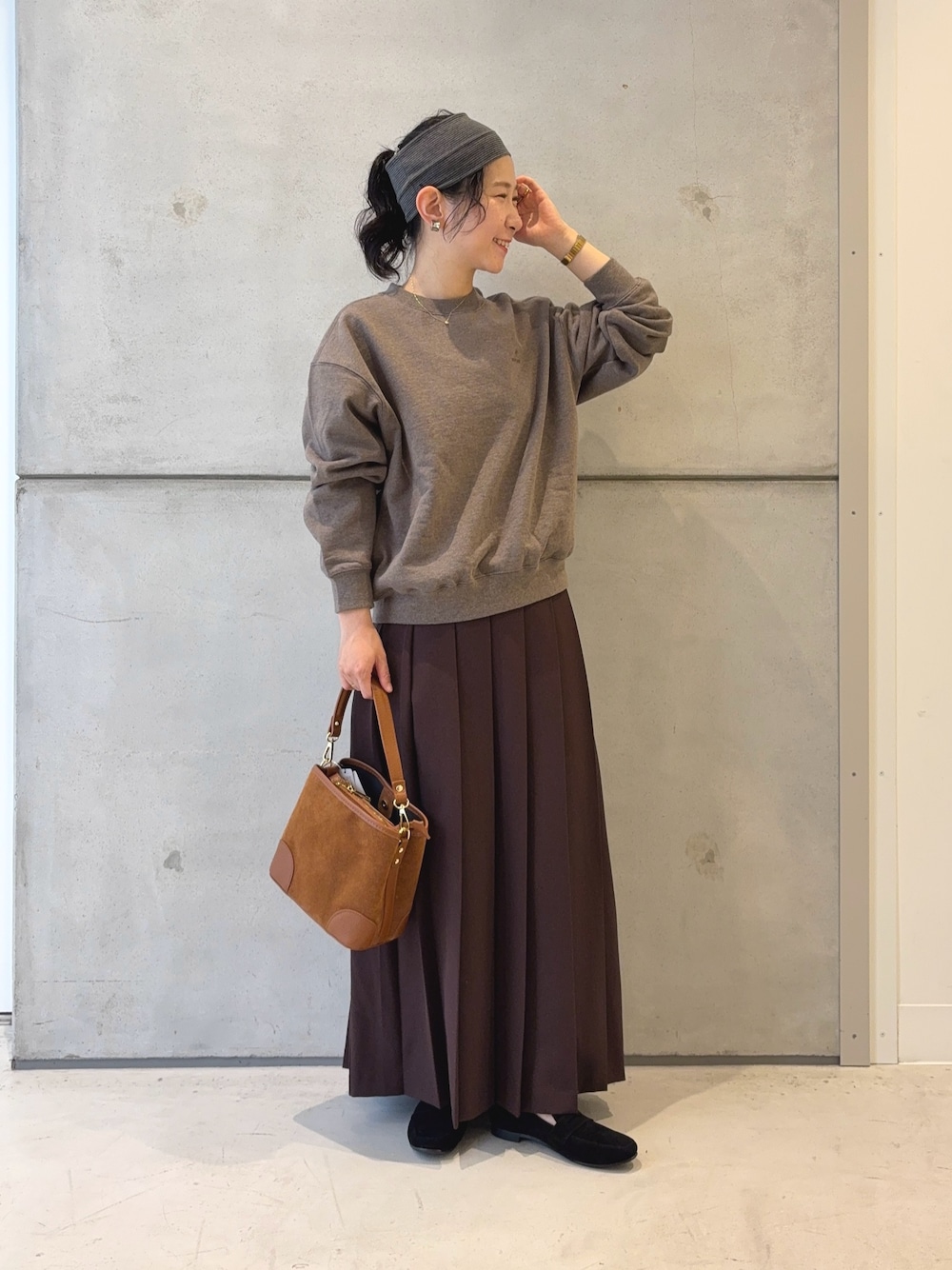 ・身長 152㎝ ・62〜64㎝ ・年齢 35歳 ▶︎ 別注 Snow Peak RecycledCottonSweat 綿100%(リサイクルコットン)素材で 通常のスウェットよりも硬さを感じる しっかりとした着心地です♻️ (洗濯機洗いOK🧺) 肩周り、身幅はゆったりしていて メンズライクなシルエット♢♦︎ 着丈はリブもありヒップの始まりくらいです! ▶︎DOORS 『UR TECH SMOOTHLUXE』片ヒダプリーツスカート 上質なポリエステルを使用して 冬秋らしい厚みのある生地感🍂 静電気防止やピーリング防止は これからの時期に嬉しい機能です! (洗濯機洗いOK🧺) 私の体型でウエストは大きめで 腰で履くよな感じになります。 丈はマキシ丈くらいで、 フラットシューズでも大丈夫でした👌🏻