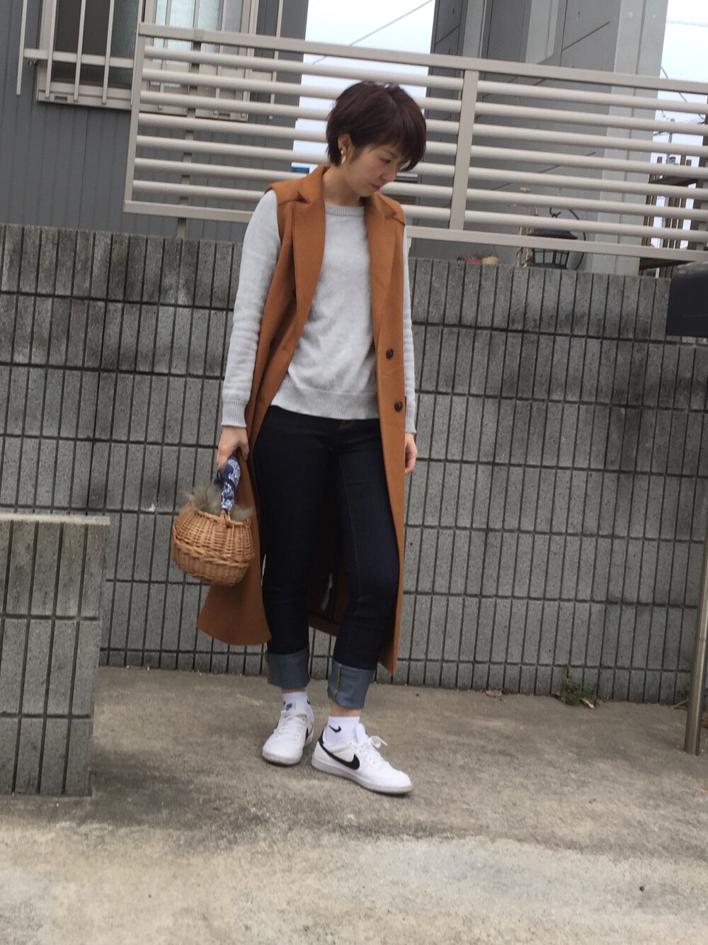 saleで買ったロングジレ?ジレなのか? 今日は暖かいから着れたぁ✨ 桃の花が咲き始めて我が家にも春が来ました🌸