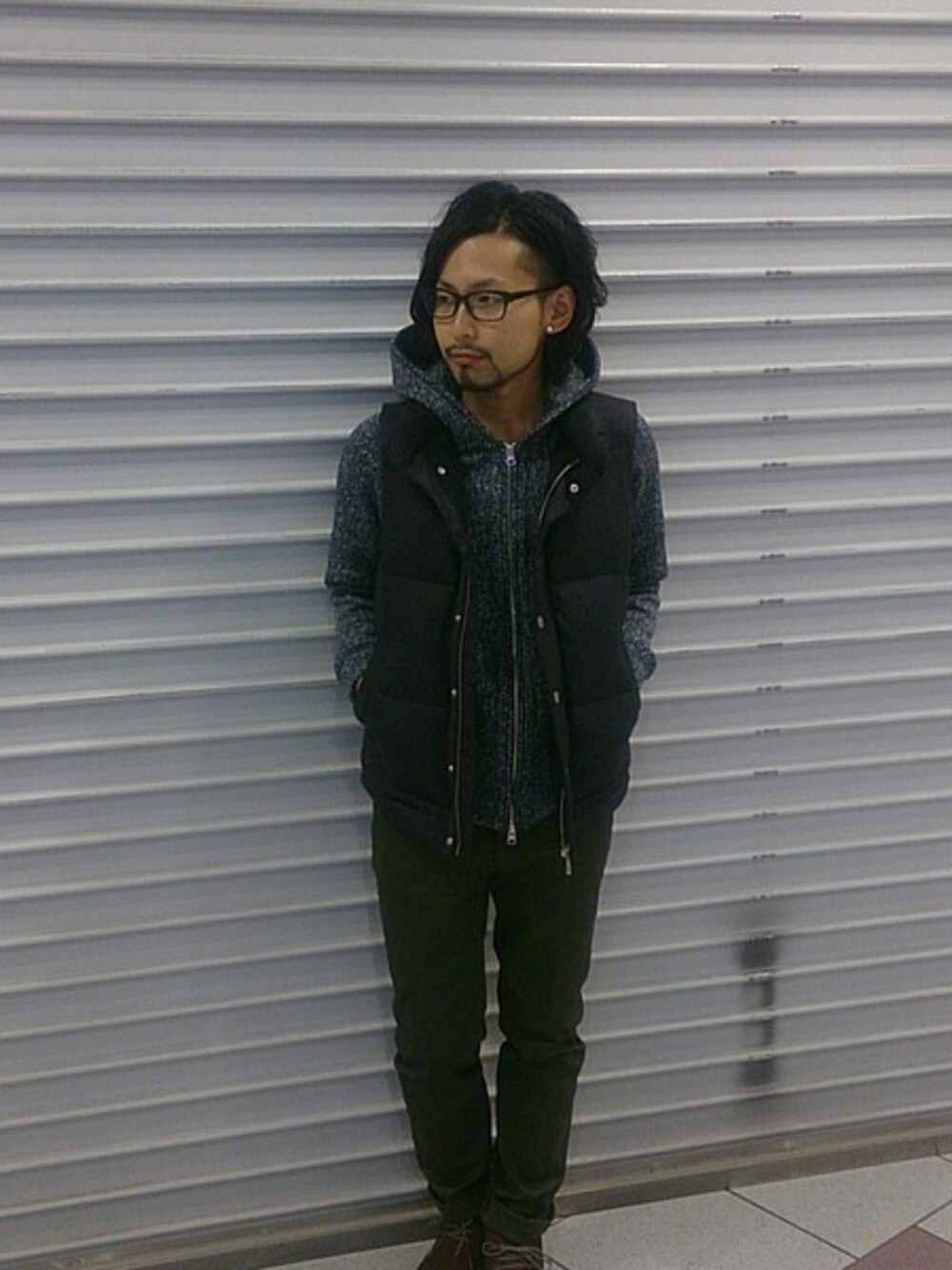 セーターとフリース、二重で暖かいパーカー。 ダウンベスト合わせでカジュアルに。