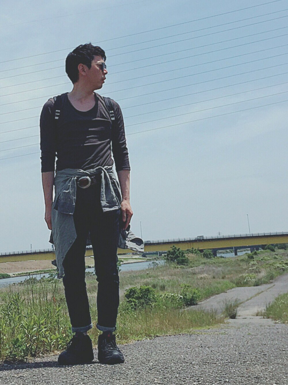 今日も1日ありがとうございます! さて、今日のコーデは全体的にダークトーンでまとめて赤のベルトをチラ見せ👀 シャツを腰に巻いて、はい出来上がり♪ さあ、今日もDoシンプルに♪