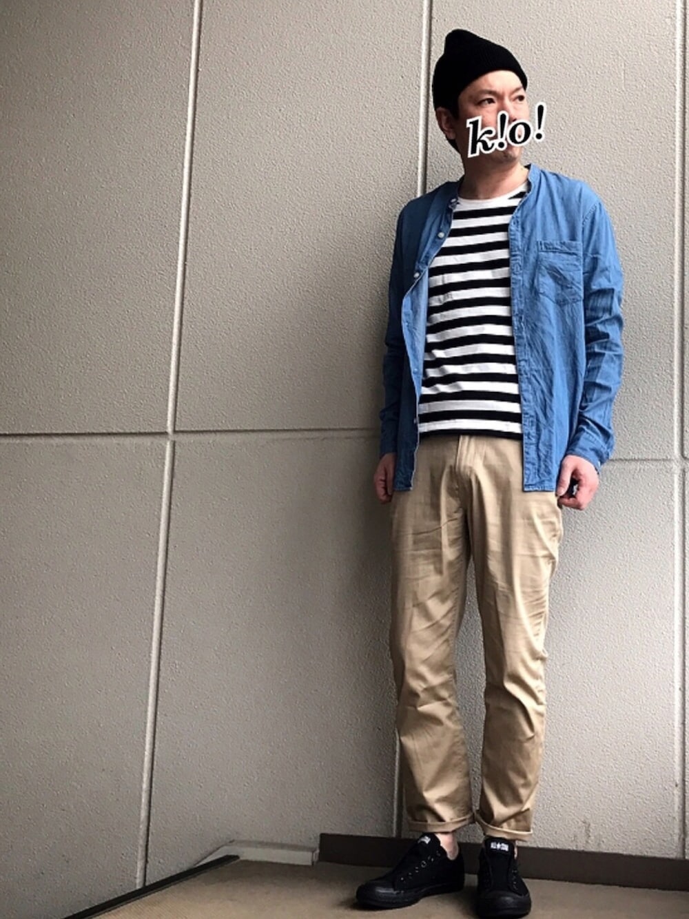 今日も1日ありがとうございます♪ ノーカラーデニムシャツ×ボーダー さて、今日もDoシンプルに♪