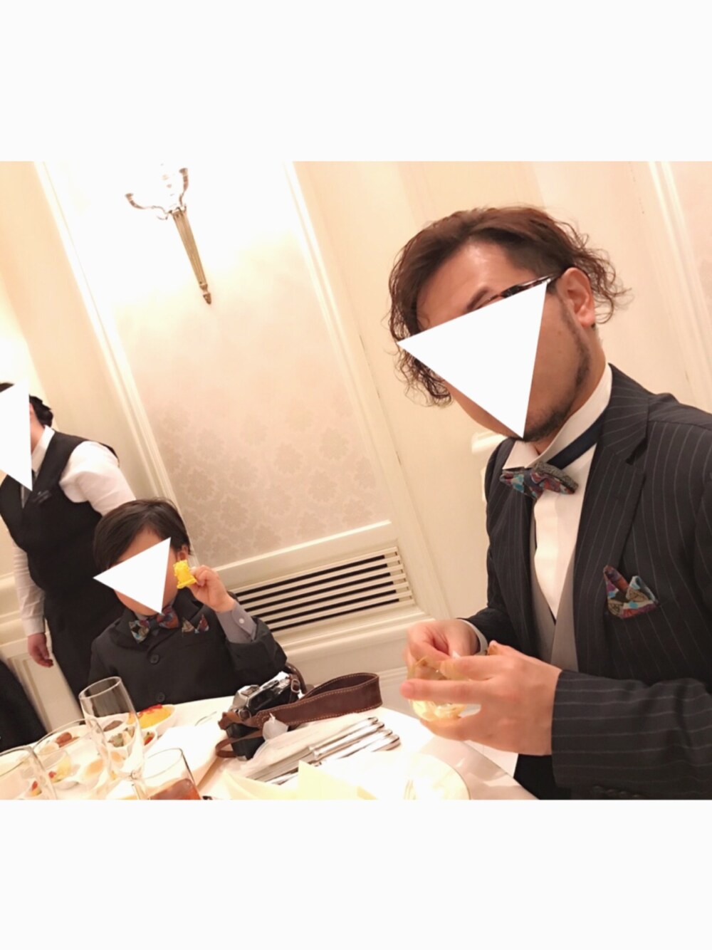 親戚の結婚式 お揃いの蝶ネクタイとポケットチーフ どうしても息子と同じにしたくてオーダーさせて頂きました^ ^