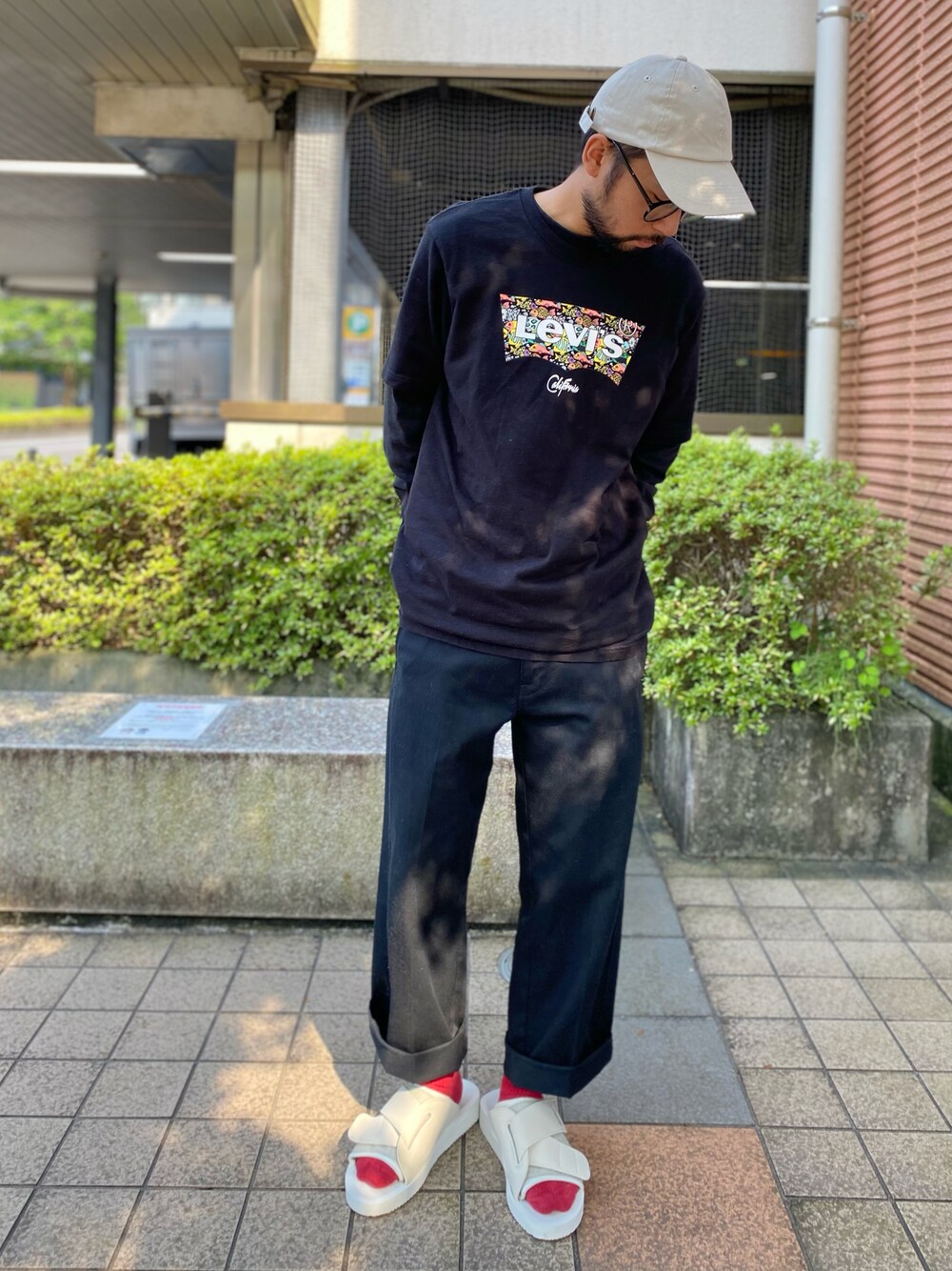 🐟▪️🐟▪️🐟▪️ levi's printTshirt black coordinate ......... 黒まとめ and 小物白まとめ お魚さんがワイルドな 楽しいTシャツとなってます🕺🏻 ........ オンラインショップ、店頭共にsale中です ▫️ 16143-0305 バッドウィンググラフィックTシャツ ¥3,300 ▫️BN-4112009 M52トラウザーパンツ ¥6,600 ▫️BN-4214004 ヘビーウェイトロンT ¥2,750 。 。 roughにcasualに