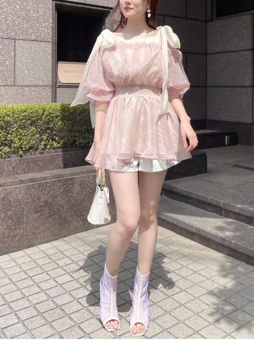 半袖になっても安定のかわいさ( ᴖ ̫ᴖ ) シアーオフショルチュニックが入荷しました👏🏻 春物で完売してしまったピンクもございます🫶🏻
