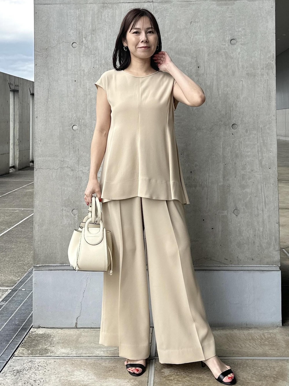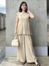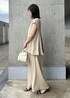 デザイン性のあるプルオーバーとシンプルなワイドパンツ。 これからのシーズンに嬉しいさらさらとしたサテン素材の裏地。 ゆるい着心地と女性らしいシルエットが魅力です⭐︎