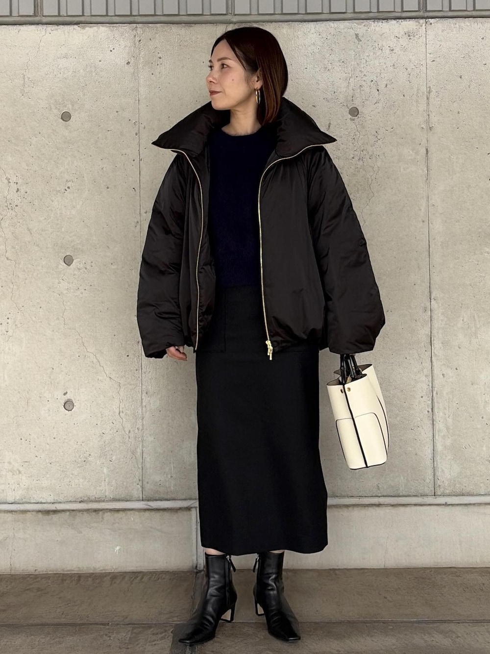 程よい光沢感のキレイめダウン。 着回し万能の通勤styling。