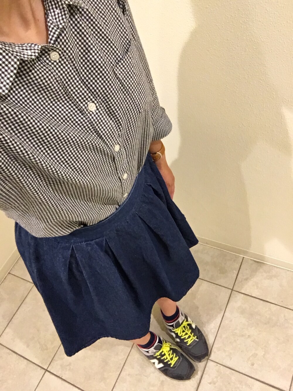 こんばんは〜😊✨ 今日は雨で少し肌寒かったのでギンガムチェックのシャツにデニムスカートでお気に入りのnew balanceです☺️💓 2016 06.28☂️☁️