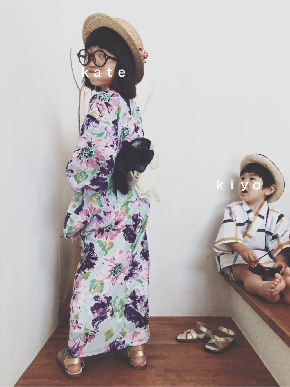 3年前に作った浴衣がさすがに着られなくなり、今年は新しく作ったデー kateは何年も前にもらって仕舞ってあった生地で。 kiyoには初甚平。
