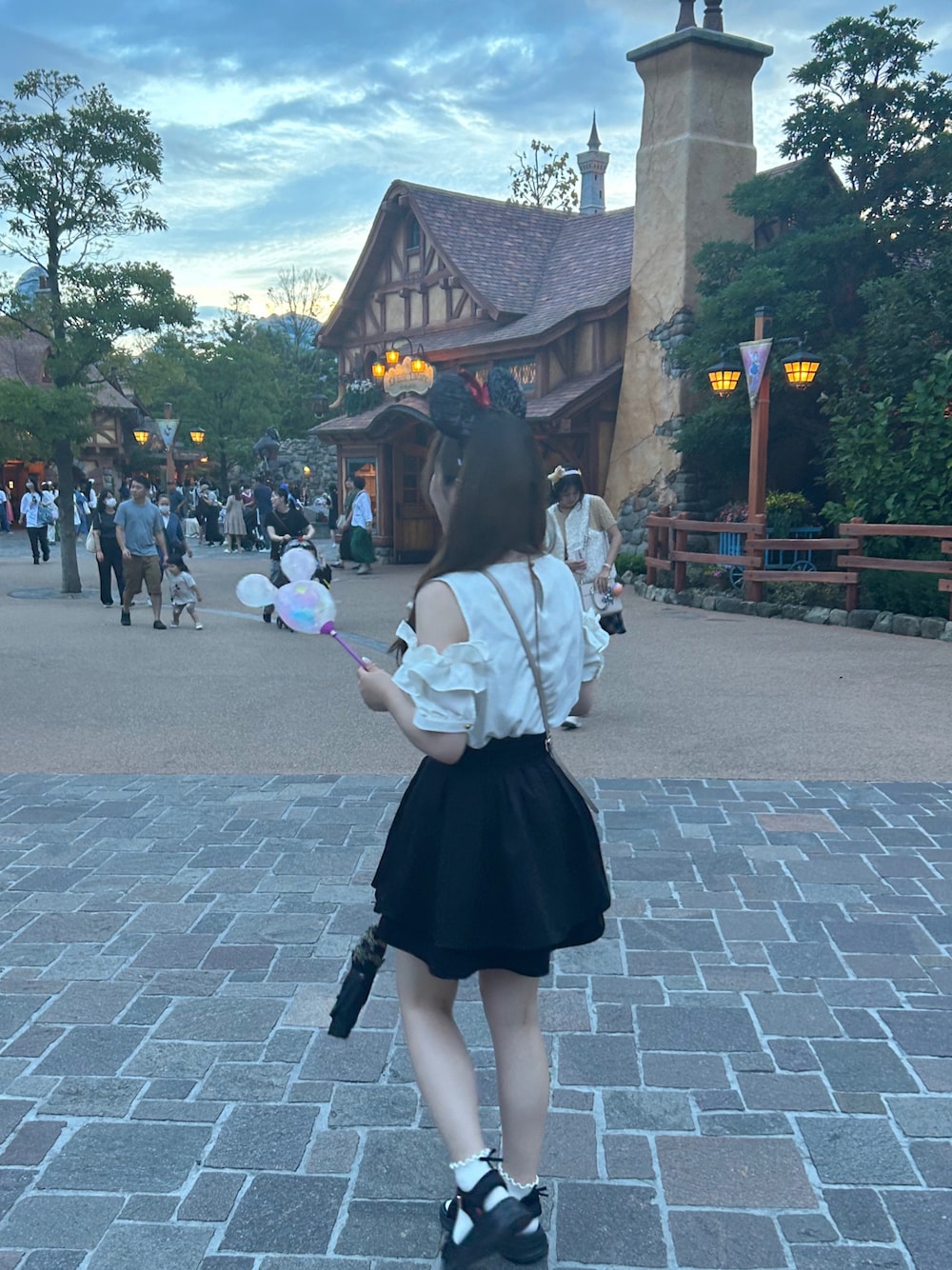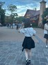 ディズニー甘めコーデ🎀 腕のふりふり可愛い!! 日傘すごい伸びてた( .. )꜆꜄꜆