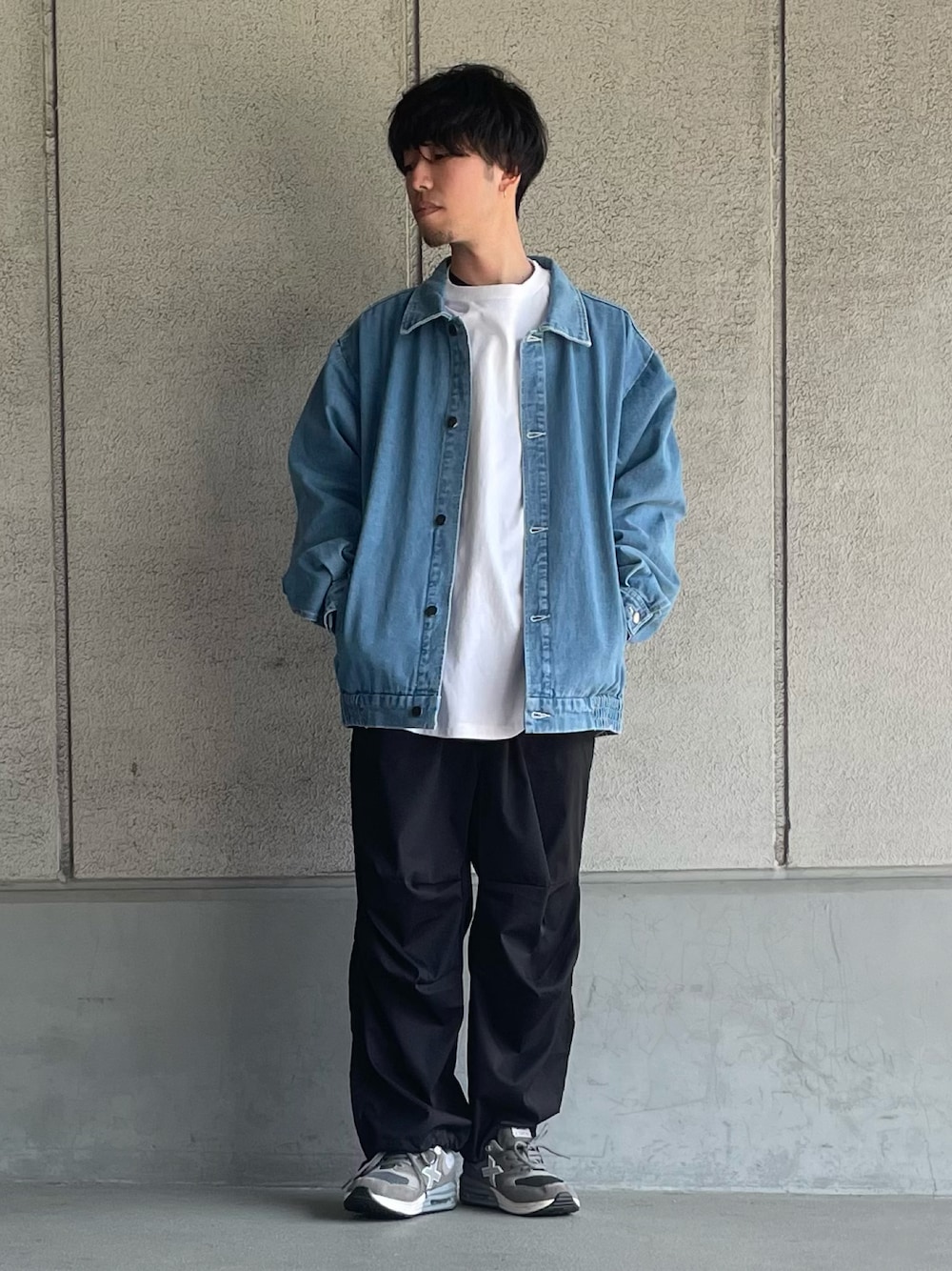 かみけん。のデニムジャケット「【新色追加】 ビッグシルエット ヴィンテージライク ケミカルウォッシュ加工 グラデーション デニムブルゾン / Gジャン デニムジャケット / ダブルポケット デニムブルゾン」を使ったコーディネート