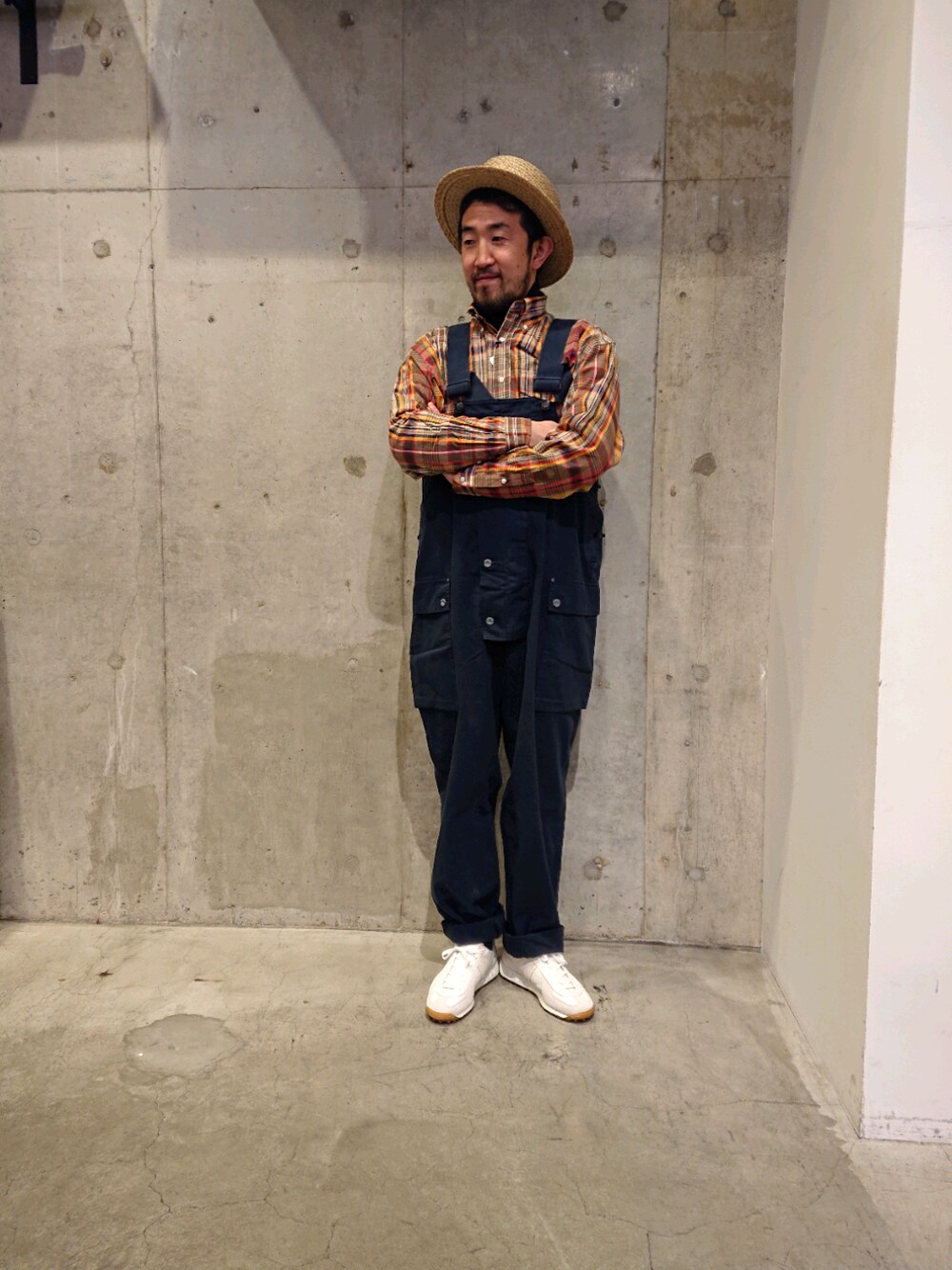 オーバーオールは動きやすいです! チェックのシャツと合わしてオールドスタイル。 uncutbound ZOZOで購入できます!!