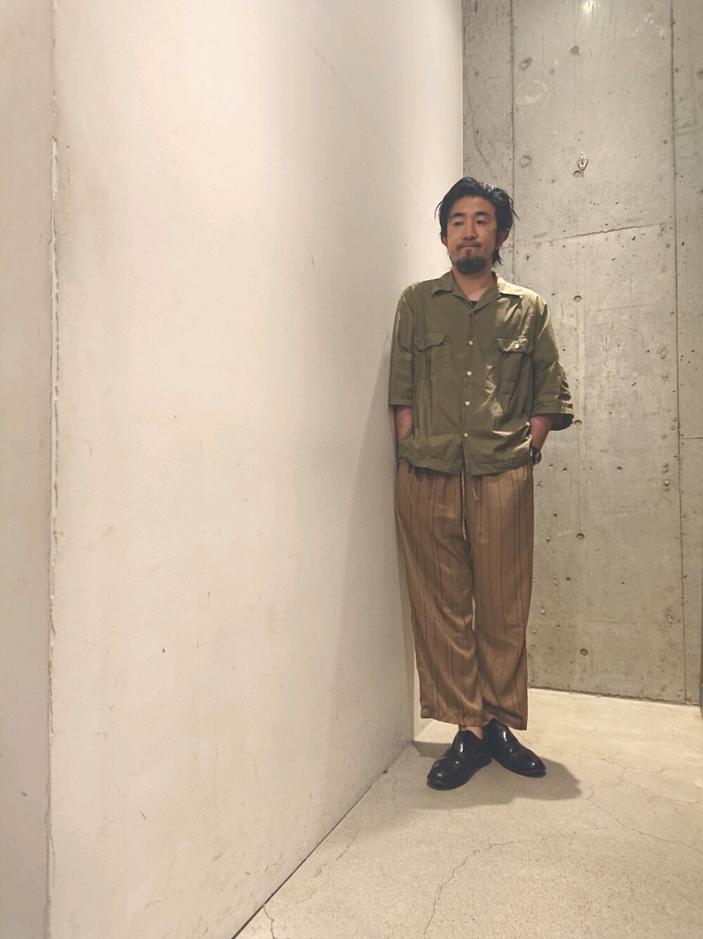 神田潔(B'2nd 上野店)のシャツ/ブラウス「H.UNIT STORE LABEL(エイチユニット ストアレーベル) Dolman open collar s/s sht」を使ったコーディネート