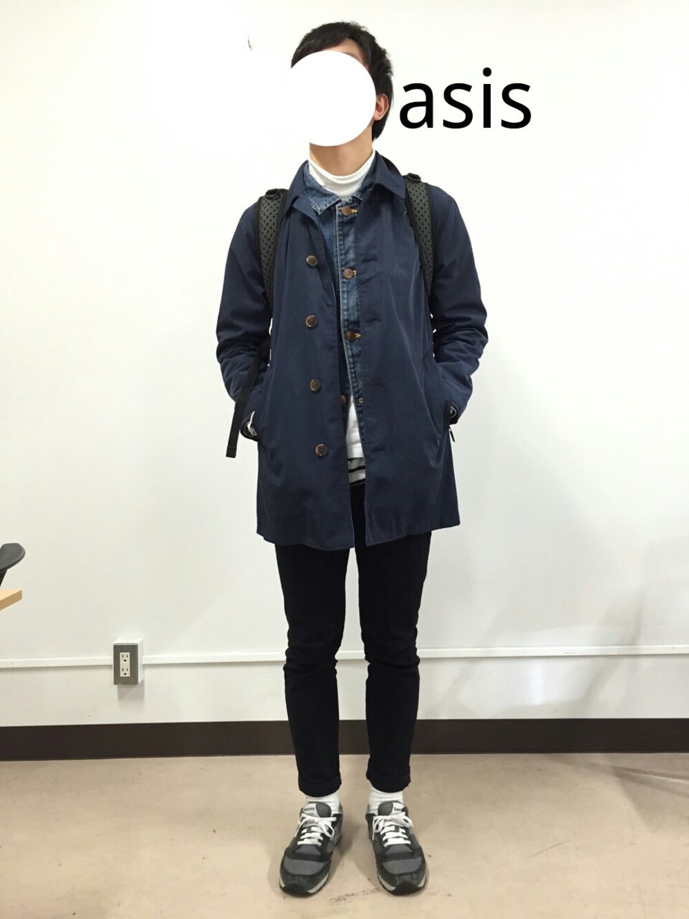 kishikenのステンカラーコート「990円コート」を使ったコーディネート