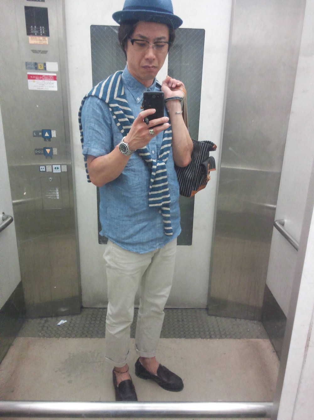 ブルー×ホワイトコーデ