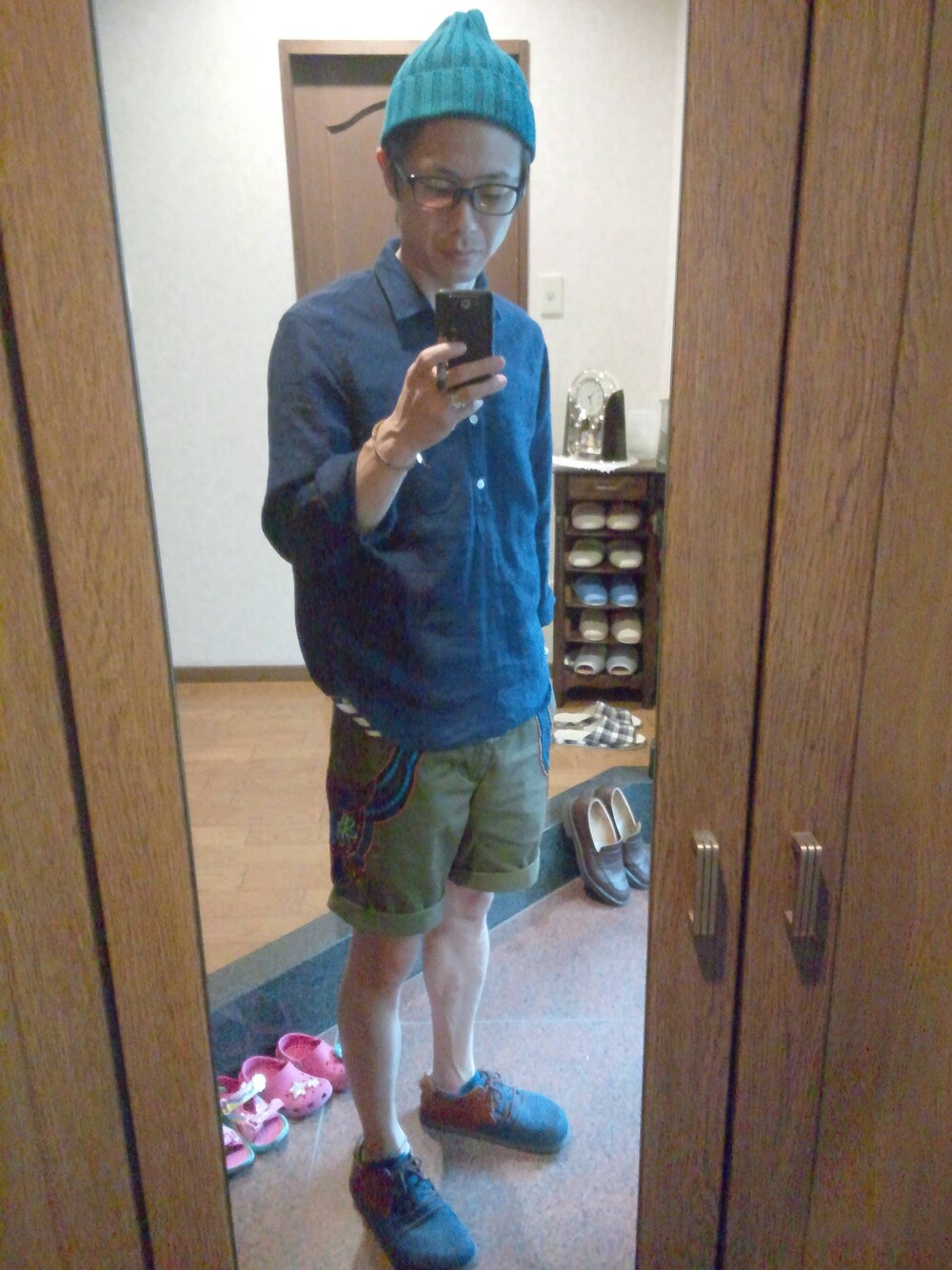 最近買ったインディゴ染めのプルオーバーシャツを昔買ったアールディーズのショーツにあわせてみました!
