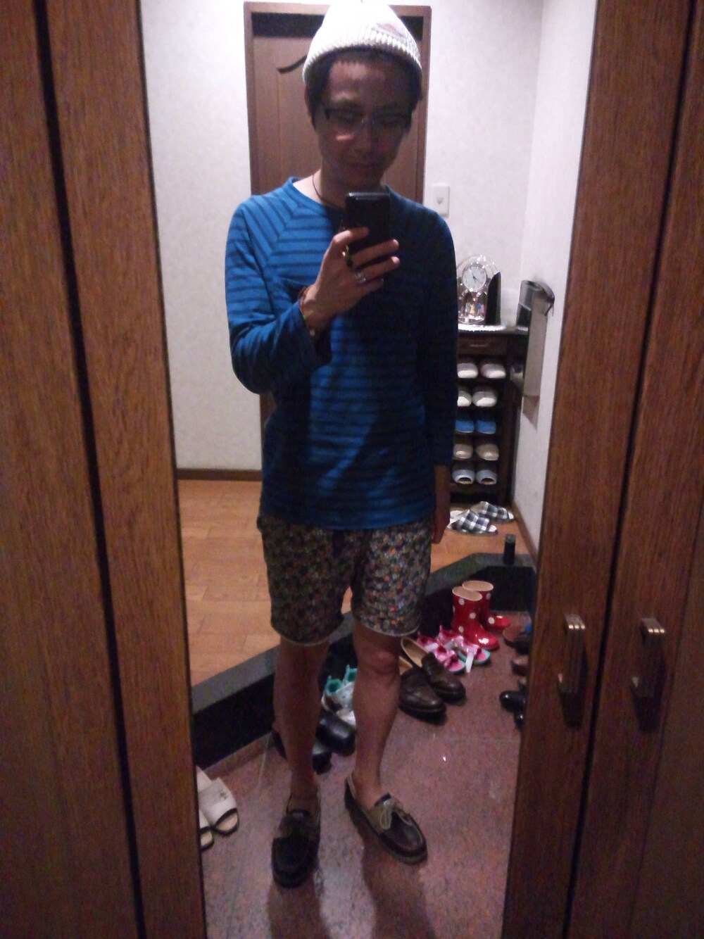 秋を感じて七分袖Tに。