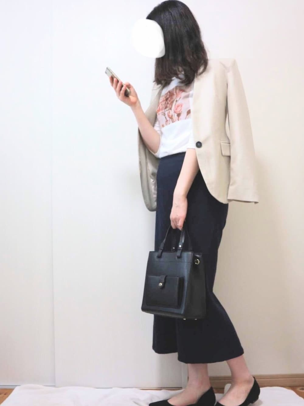 Beige + Navy blue Thanks for your LIKEs... ZARAのノーカラージャケットは カジュアルにもシックにも着れる万能アイテムでした…! お気に入りのロングのタイトスカート合わせて大人っぽく♪