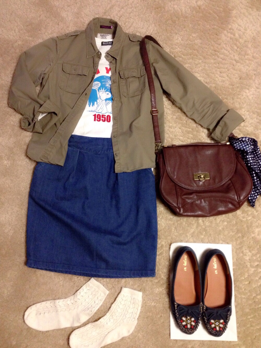 シャツ:earth music&ecology ロンT:BEAMS BOY スカート:on the couch キャラTなので子どもっぽくならないようにしてみました!