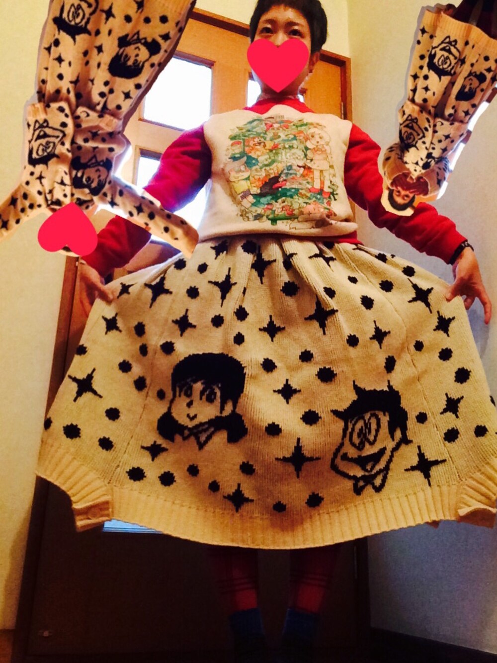 ネネットの夢いっぱいシリーズ。 なんだか、ごちゃごちゃしてますが、 暖かいし可愛いし、お気に入りです。 アウターを羽織ると、セットアップ。 みんなに、「これのび太くんとしずかちゃん?」 と聞かれまくりまくりまくりましたが、 違うらしいですよ。笑