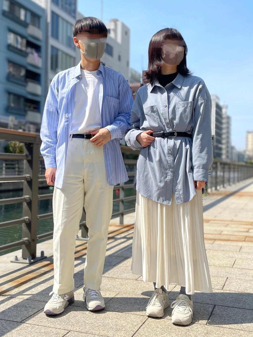 いつもいいねやお気に入りありがとうございます🐶 個人用アカウントとInstagramもやってます📷 ◾️個人用アカウント【@2ntwtk0】 ◾️Instagram【@mokolink】 そちらにもぜひ遊びに来てください🥺 ------------------------------------------------------- ✔️ 爽やか青シャツコーデ 春夏を意識してブルーをメインにリンクコーデ👫 ボトムスをホワイトにすることで、爽やかなコーデになります🐬 パンツとスカートでアイテムは違いますが、色を合わせれば◎ 形違いのリンクもかわいいです〜! 🙋♀️ウエストマーク×プリーツスカート メンズライクなオーバーサイズのシャツに女性らしさをプラスしました♡ ベルトは太めのものを選ぶとコーデにメリハリがつけられます! 🙋♂️タックイン 冬から春夏にかけてアイテム数が減ってきて、今回はシャツ以外オールホワイトなのでコーデが単調になりやすいです🤔 なのでタックインして、ベルトは黒でコーデに締まりを◎ アイテム数が少なくなる春夏こそタックインの出番ですね!