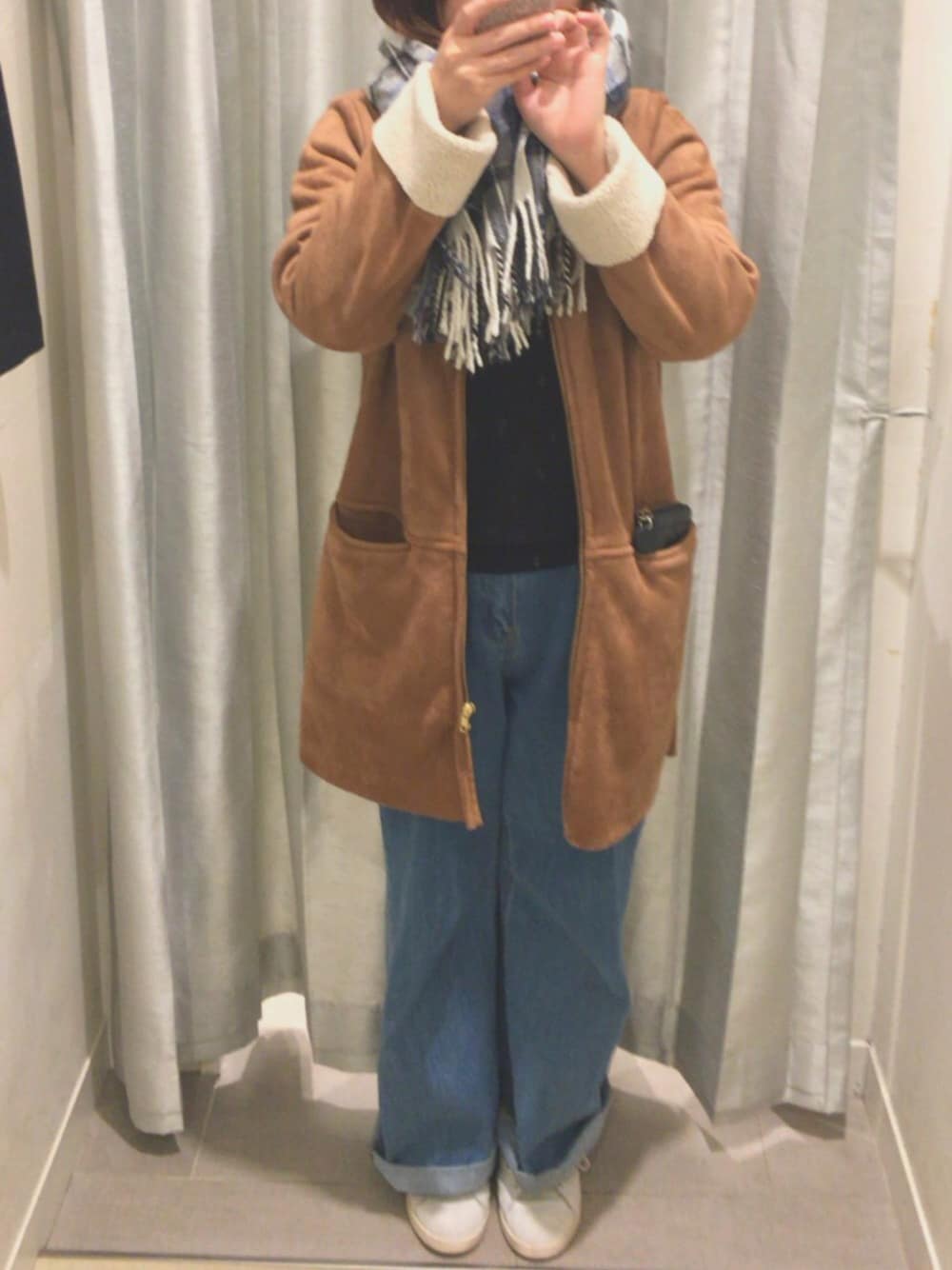 寒~い😖❄️ まだ薄手でいけるかなと思ってたけど… もう無理でした😱⚡️ ムートンコート引っ張り出しました‼️ ノーカラーで首回り寒いからストールぐるぐる巻きです🌀 …ぐるぐるが見えない…😑
