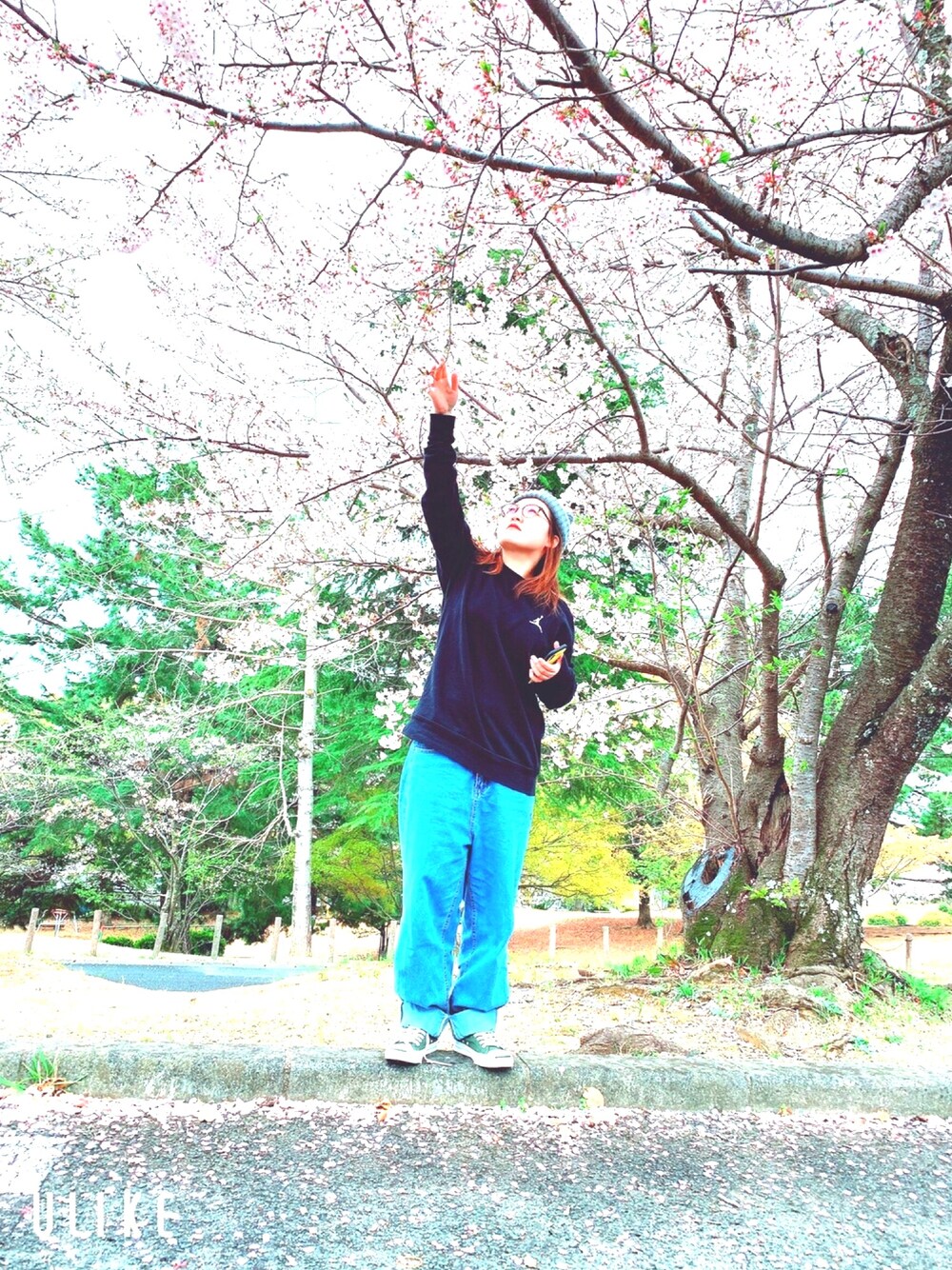 お気に入りのエアジョーダンのパーカーを着てお花見🌸